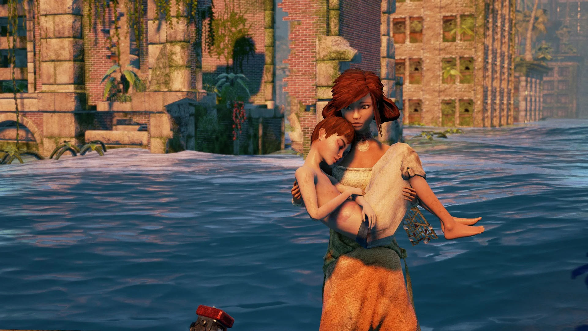 Without giving anything away, the basic premise is that the world is funnily enough under water. We play as a young girl who is looking after her younger brother, who we quickly learn is suffering from some kind of sickness. In the opening moments we find a suitable place to shelter and use as a home base, which will serve as the game's hub for the remainder of the story.