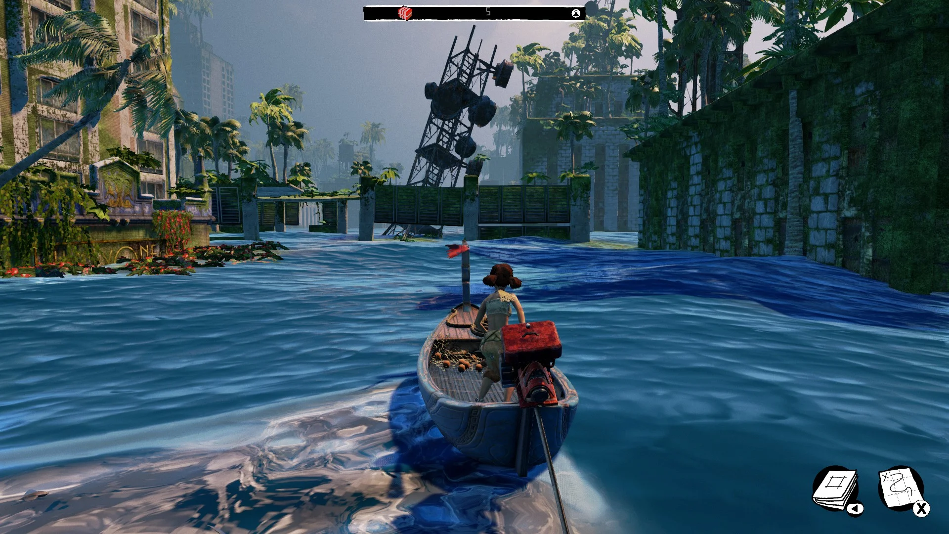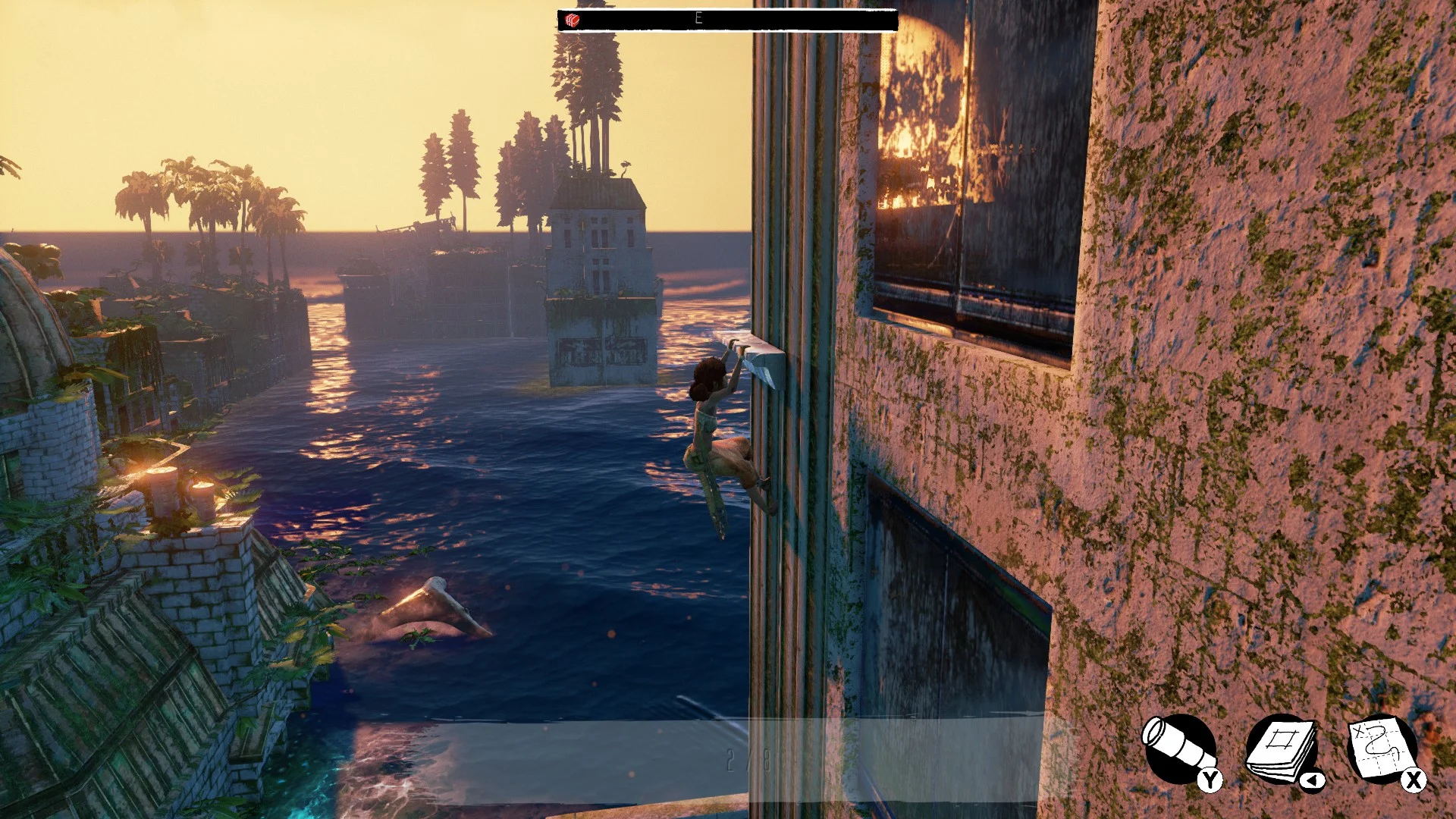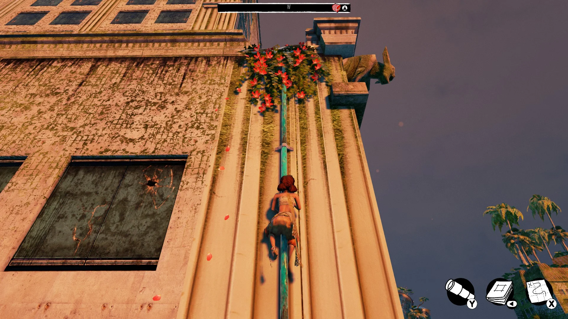 If I were to be reductive, I could reduce the gameplay down to a simple loop. Basically you need to find food and medicine for your brother who is ill, so you set out in your boat to find resources. After putting around a while, you find a building with indications of a supply drop on its roof. Then it's as simple as finding where you park your boat, then following the different pipes and ledges available to help you climb the outside of the building.