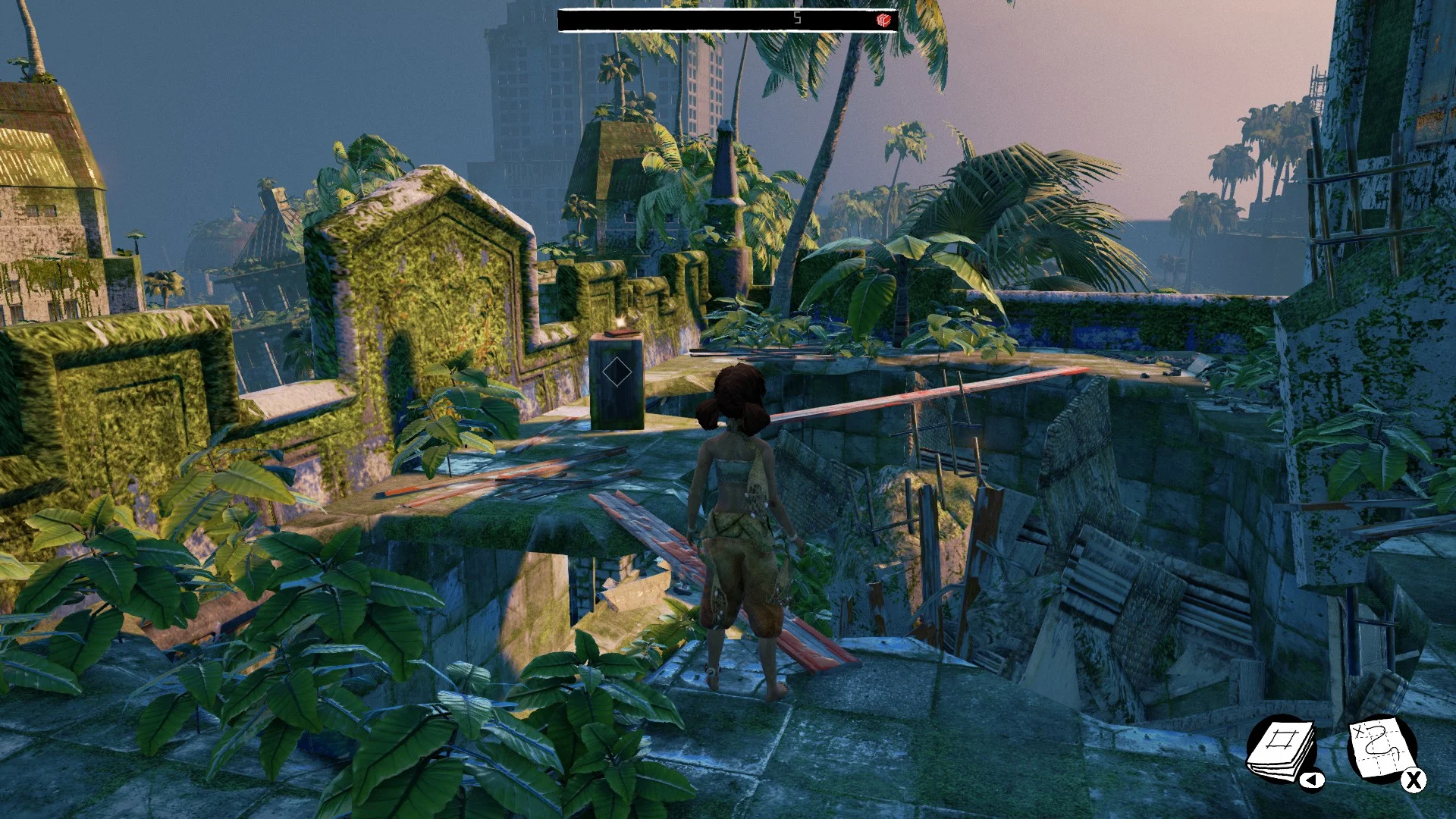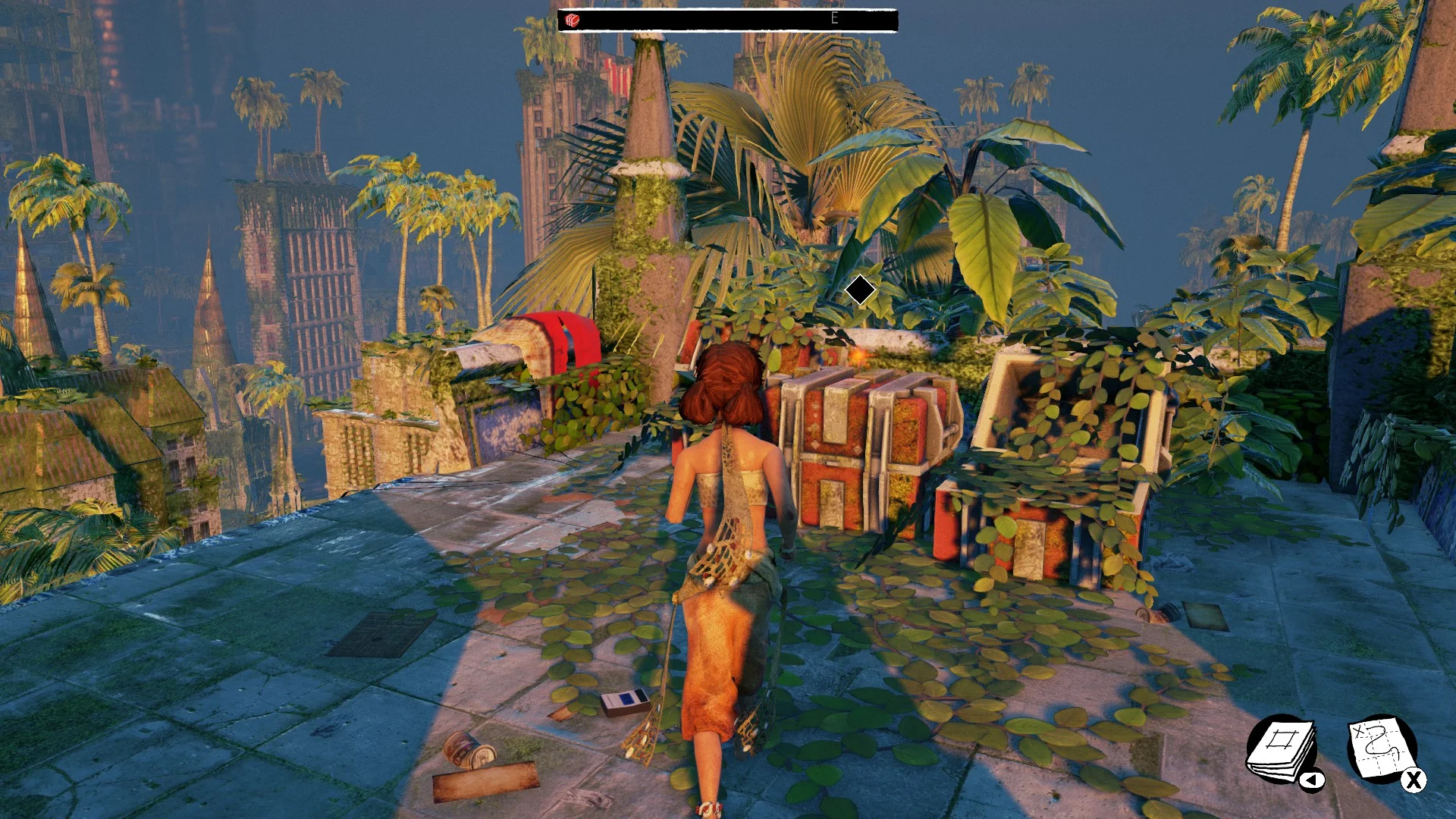 Essentially, we are free to explore this submerged city via pre-determined docks and grapple points. Most buildings will have one or two places where you can tie up your boat and disembark. Then it's up to us to find various pipes, ladders, and overgrown vines to climb up and around each building to find loot.